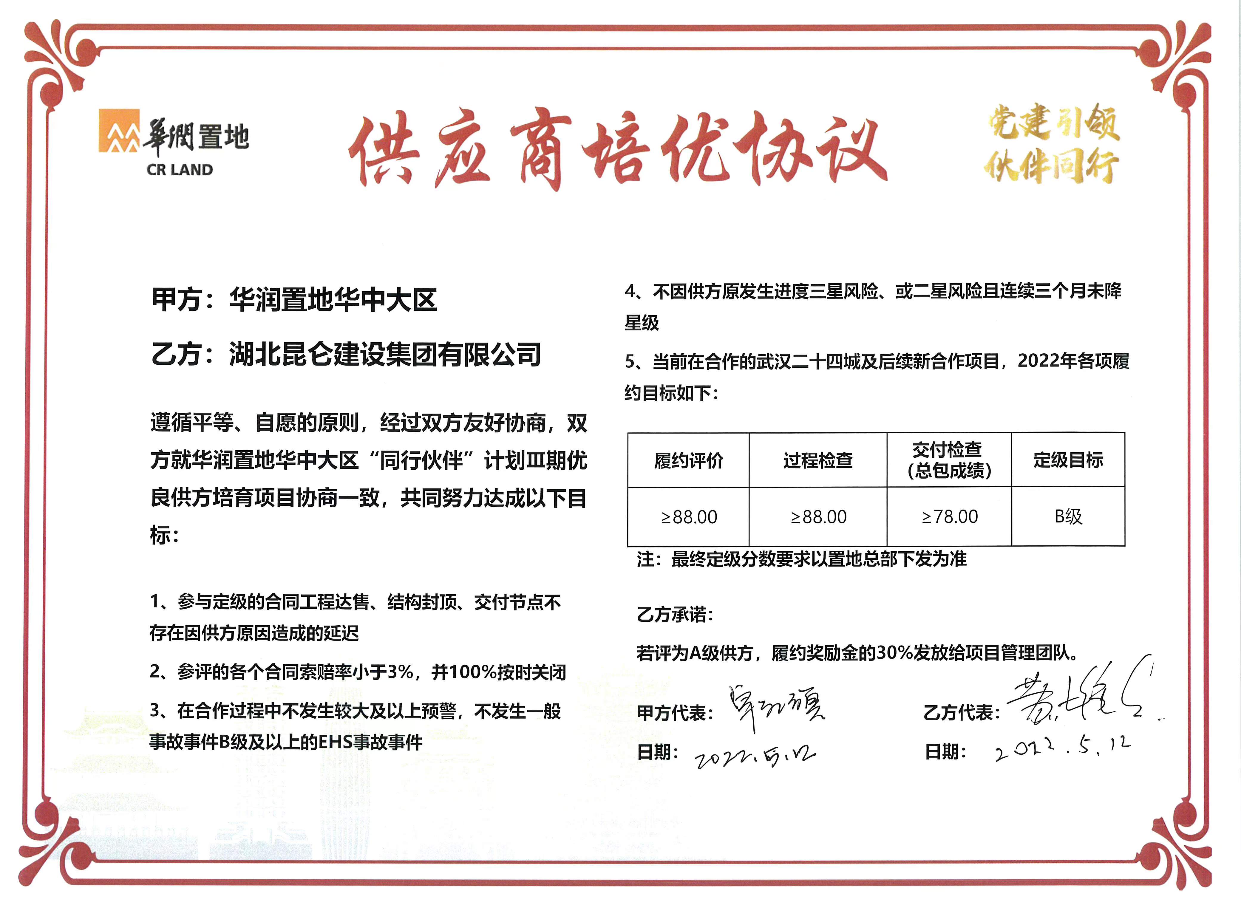 • 2023年5月14日簽署華潤置地華中大區(供應商...